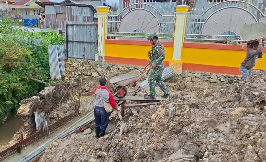 Gotong Royong Bangun Pagar Gereja, Wujud Kedekatan TNI dan Warga Deiyai