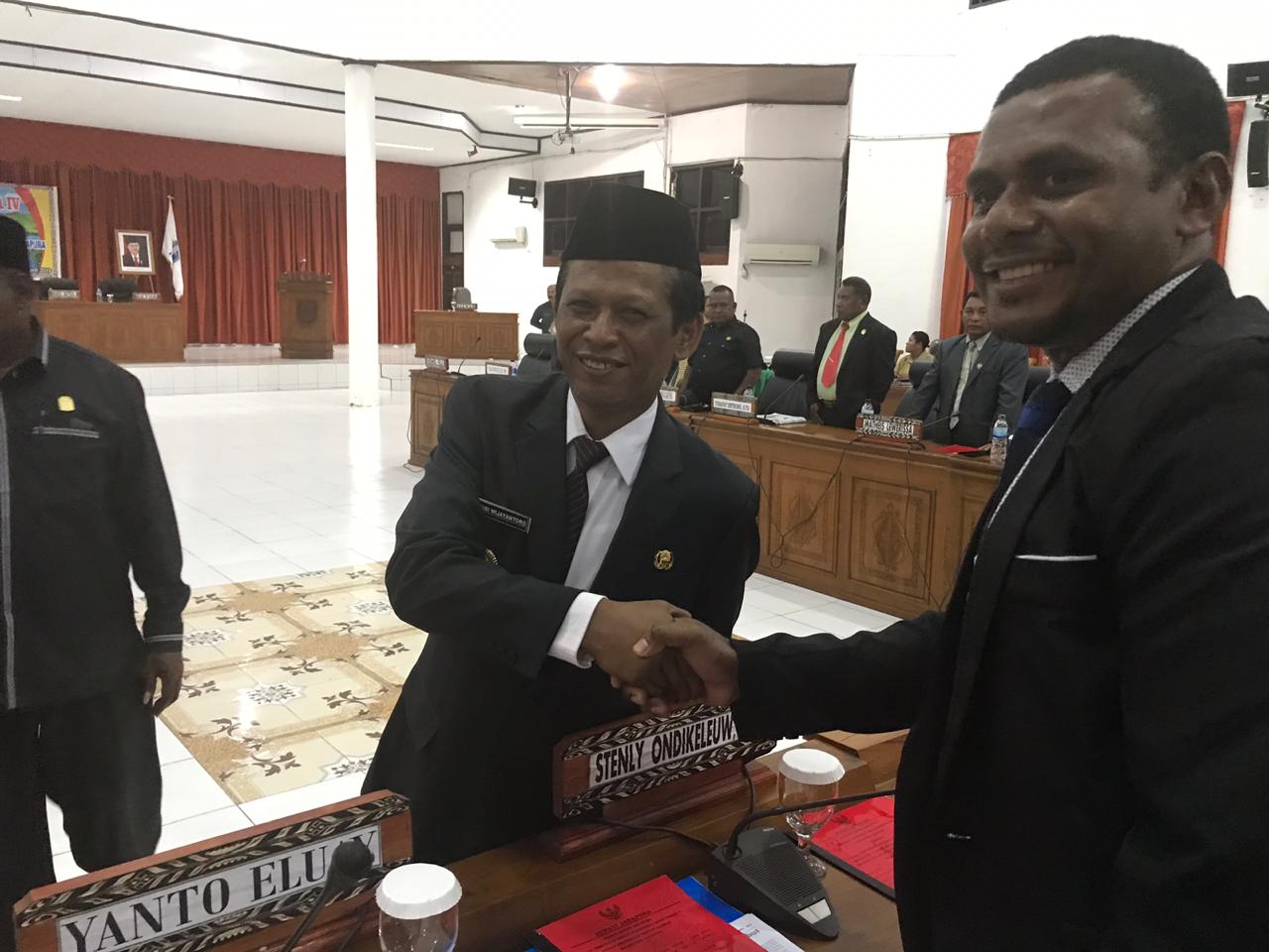 Penutupan Sidang Paripurna I Masa Sidang I DPRD Kabupaten Jayapura dipimpin Wakil Ketua II Korneles Yanuaring serta dihadiri Wakil Bupati Jayapura Giri Wijayantoro.