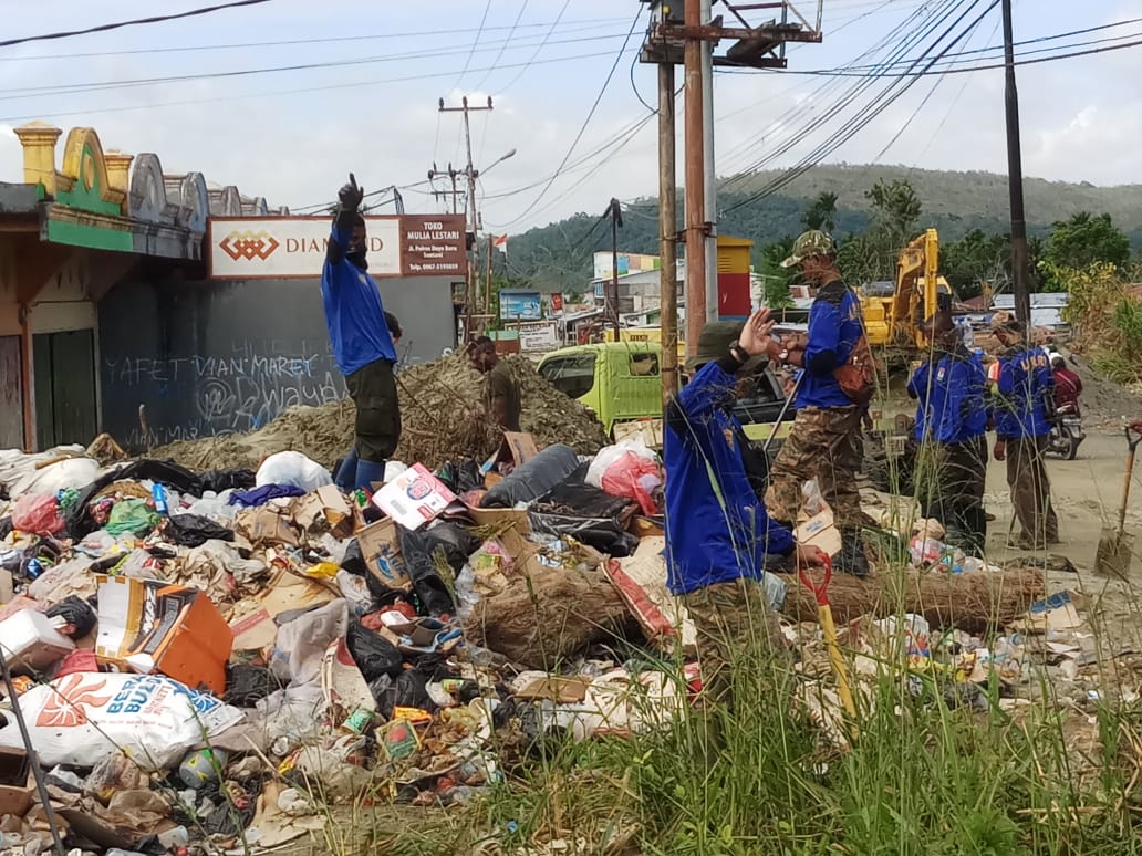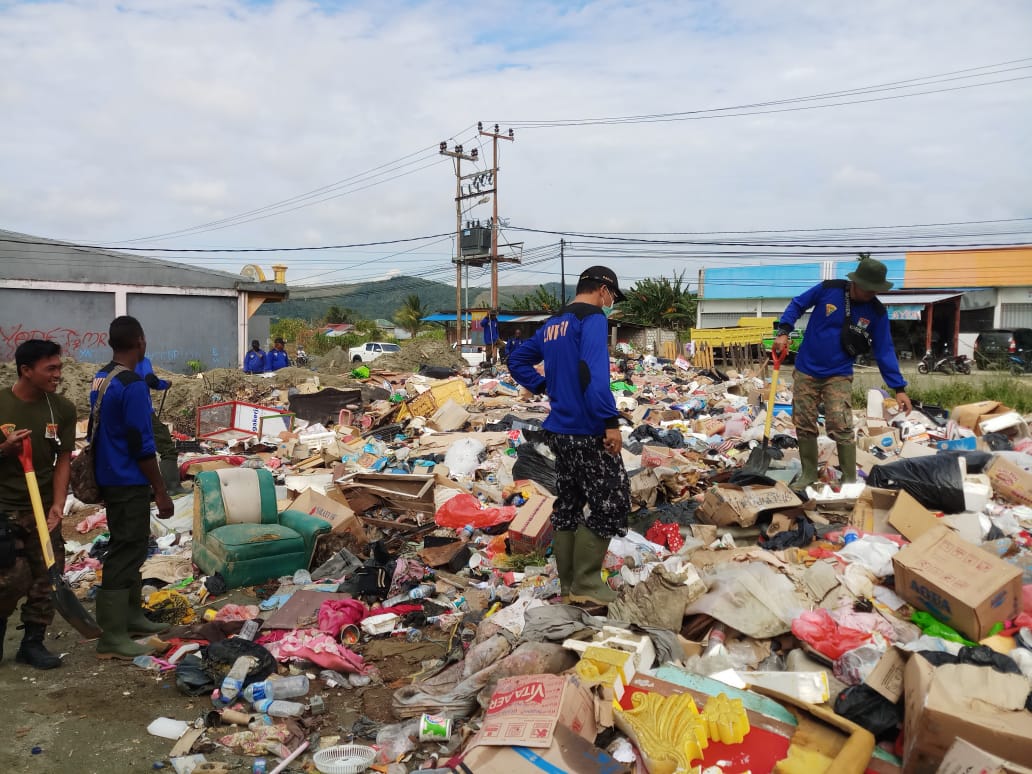 Sentani (Sentani News)- LMR Papua kerahkan 100 personil anggota lebih membersihkan tumpukan sampah yang telah mengeluarkan bau tak sedap dampak dari banjir bandang beberapa waktu lalu, sebagai bentuk kerja nyata sesuai visi dan misi Gubernur Provinsi Papua.