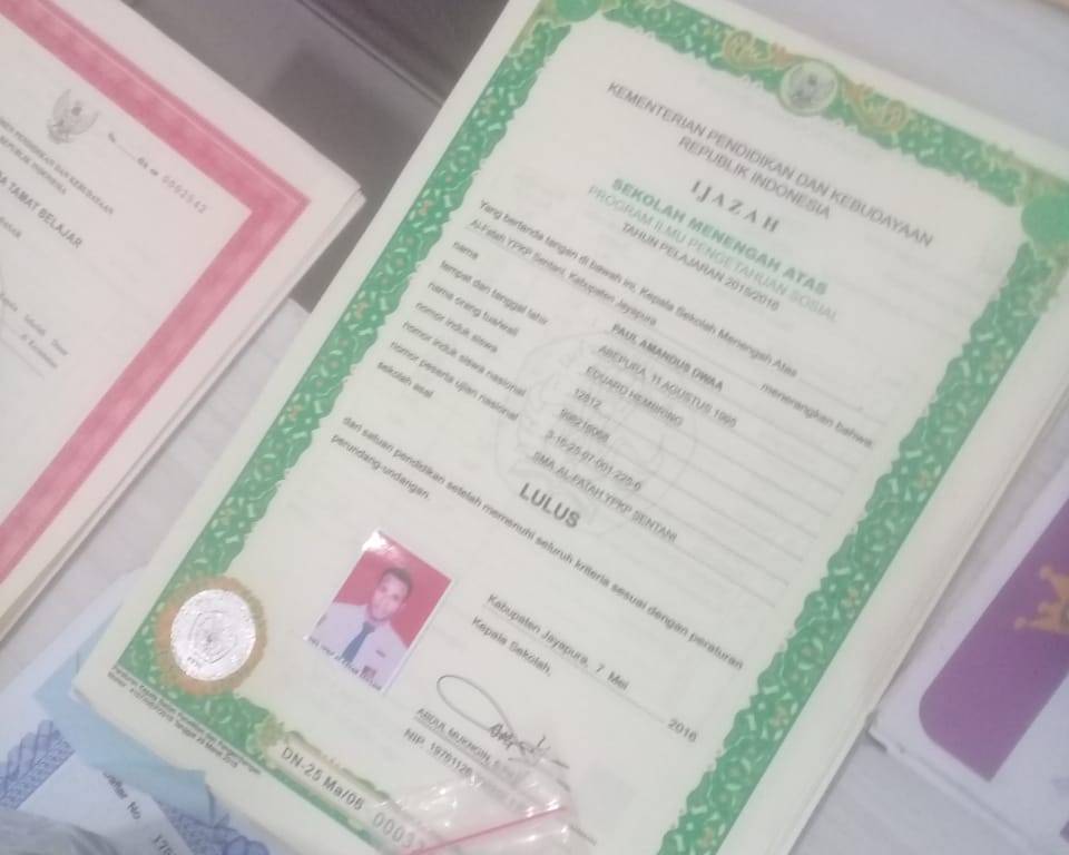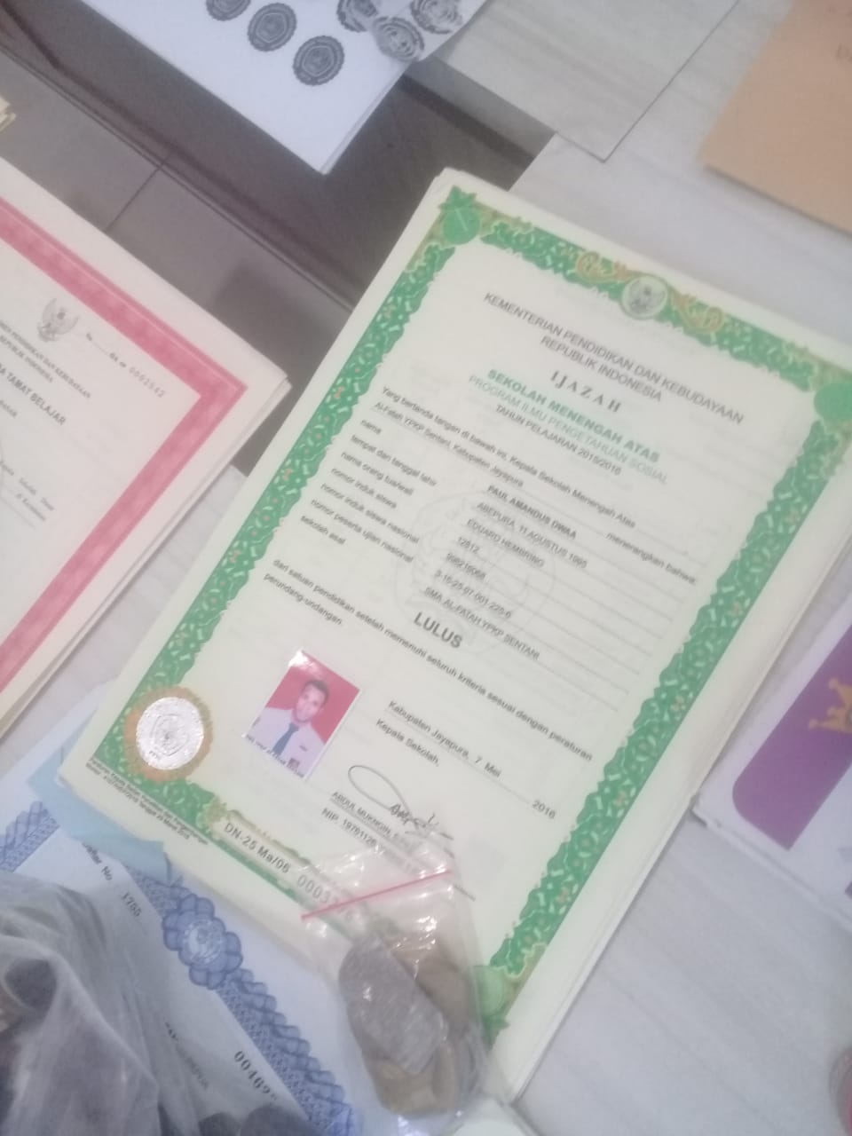 SENTANI (Sentani News)- Satuan Reskrim Polres Jayapura, Provinsi Papua berhasil mengungkap sindikat pembuatan ijazah palsu SMA/SMK dan S1,pemalsuan ijazah sudah berlangsung sejak tahun 2013 lalu hingga tahun 2019.