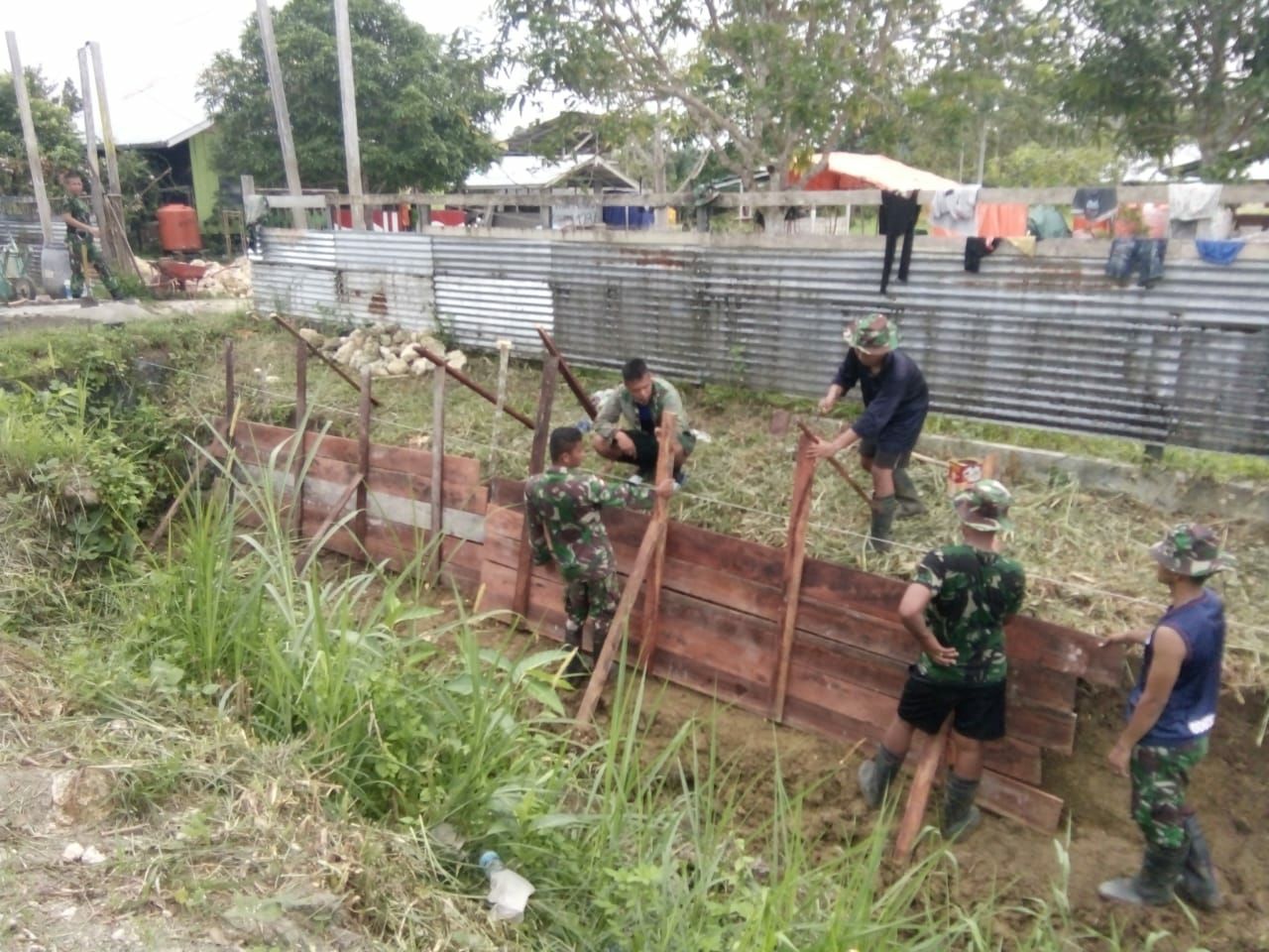 Untuk membantu Panti Asuhan Syalom Komandan Satgas Yonif 126/KC Letkol Inf Mulyo Junaidi mengerahkan 25 orang personel yang punya kemampuan tukang untuk membuat Talud penahan tanah dan air.