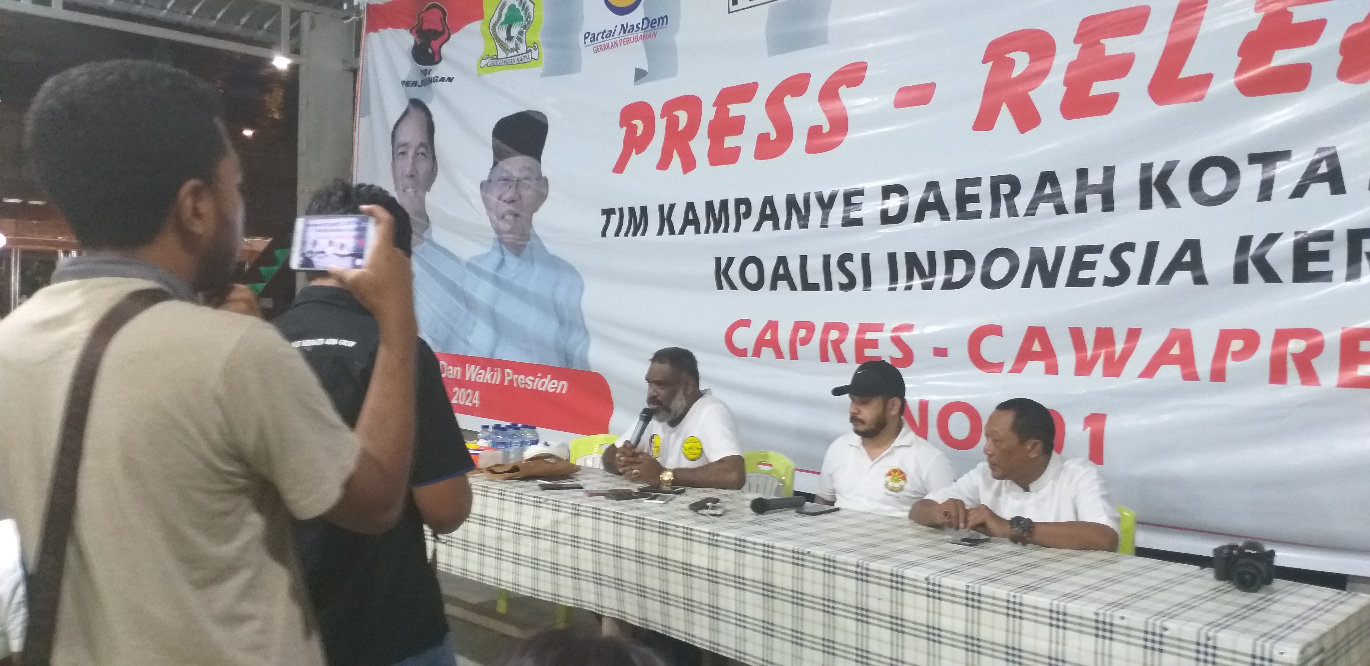 Abepura. Setelah dinyatakan menang versi hitung cepat oleh 6 lembaga survey, Tim Kampanye Daerah Kota Jayapura Koalisi Indonesia Kerja menggelar jumpa pers.