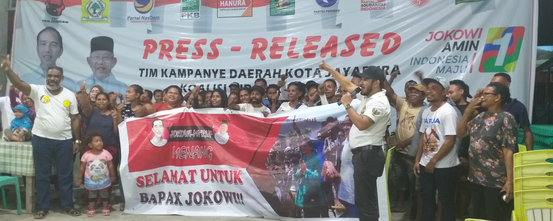 “Saya sebagai Ketua Tim Pemenangan Jokowi Kota Jayapura, berterimakasih kepada masyarakat Indonesia, khusunya masyarakat Papua, lebih khusus Kota Jayapura, bahwa kita telah memberikan hak suara kita untuk memilih Presiden Joko Widodo untuk periode kedua,” kata dia.
