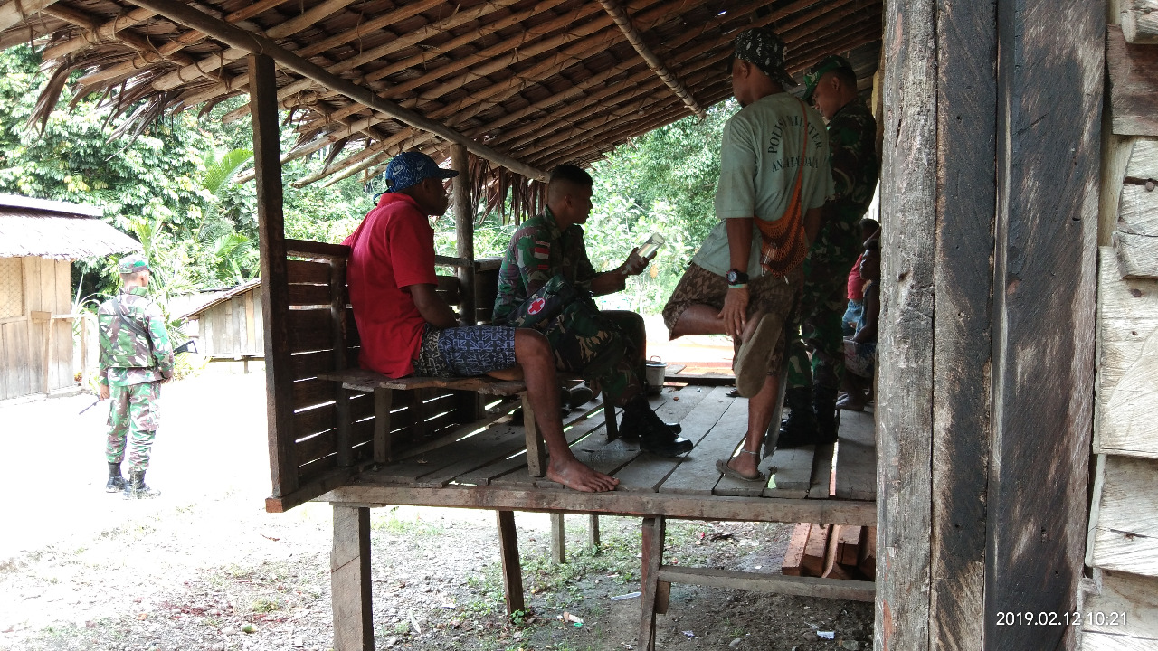 Keerom (Sentani News) – Prajurit Satgas Yonif 126/KC Pos Kalilapar melaksanakan pengobatan kepada masyarakat dengan mendatangi ke rumah warga yang sakit di Kampung Kalilapar, Distrik Waris, Keerom, Senin (22/04/2019).