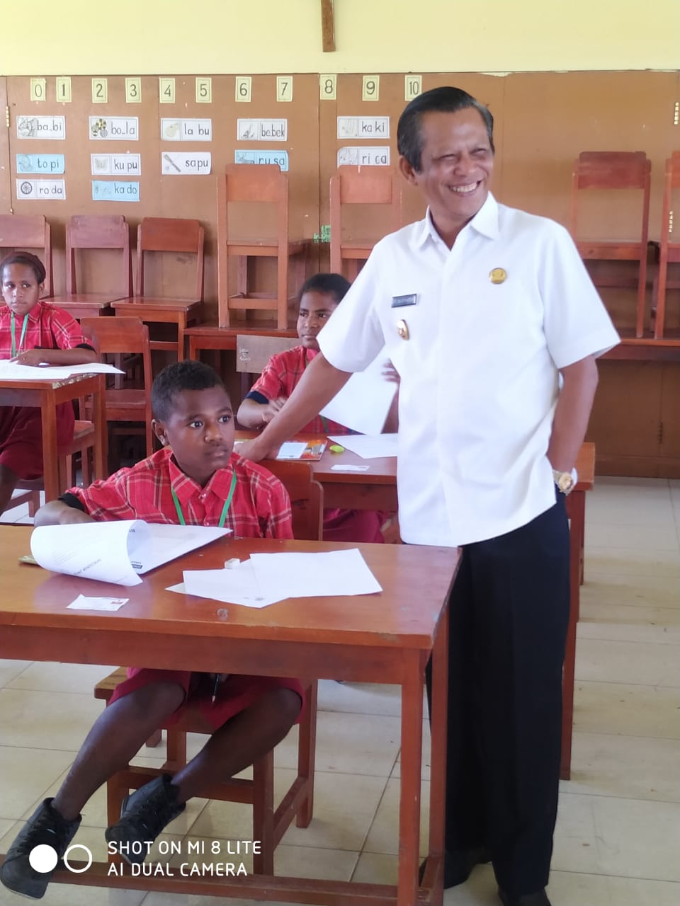 Sentani (Sentani News)- Wakil Bupati Jayapura Giri Wijayantoro memantau pelaksanaan Ujian Nasional Berbasis Komputer (UNBK) sekolah menengah pertama (SMP) Negeri 1 Kemtuk Gresi dan sekolah dasar (SD) Kanda distrik Waibu.
