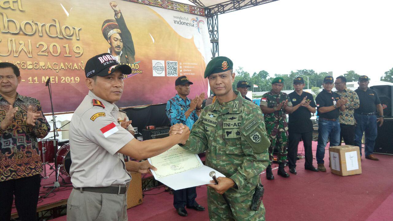 Dalam pembukaan kegiatan Festival Crossborder Skouw 2019 tersebut, Satgas Pamtas menerima dua penghargaan dari Kedutaan Besar RI untuk PNG dan Kepulauan Salomon serta dari Balai Karantina Kesehatan Pertania.