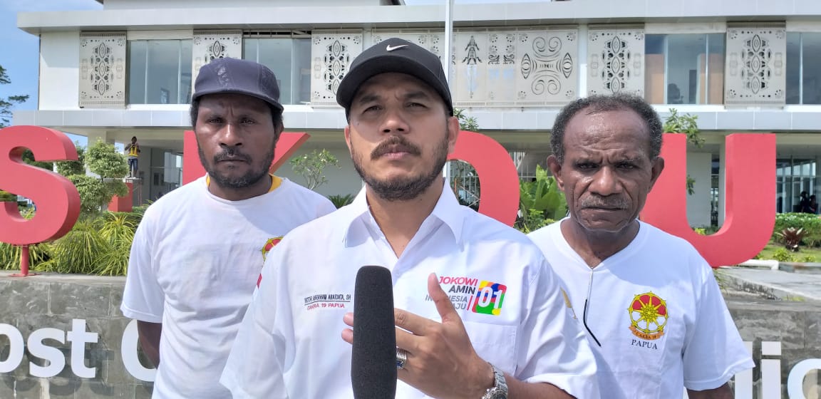 Sekretaris Cakra-19 Papua, Victor Abraham Abaidata saat bersama dengan tim relawan, Tulus Sianipar, di area perbatasan RI – PNG, Wutung, Kota Jayapura pada Selasa (21/5) mengatakan kemenangan paslon Jokowi – Amin adalah kemenangan rakyat Indonesia.