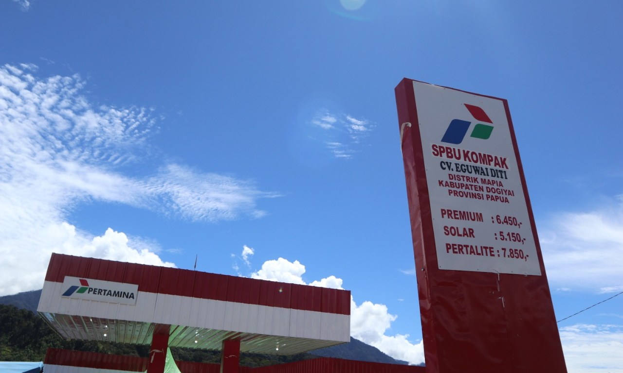 Dogiyai – PT Pertamina (Persero), Kementerian ESDM, dan Badan Pengatur Hilir Minyak dan Gas Bumi (BPH Migas) meresmikan lembaga penyalur Stasiun Pengisian Bahan Bakar Umum (SPBU) Kompak 86.68809 Kampung Bomomani, Distrik Mapia, Kabupaten Dogiyai Prov. Papua pada Selasa (9/7) siang waktu setempat.