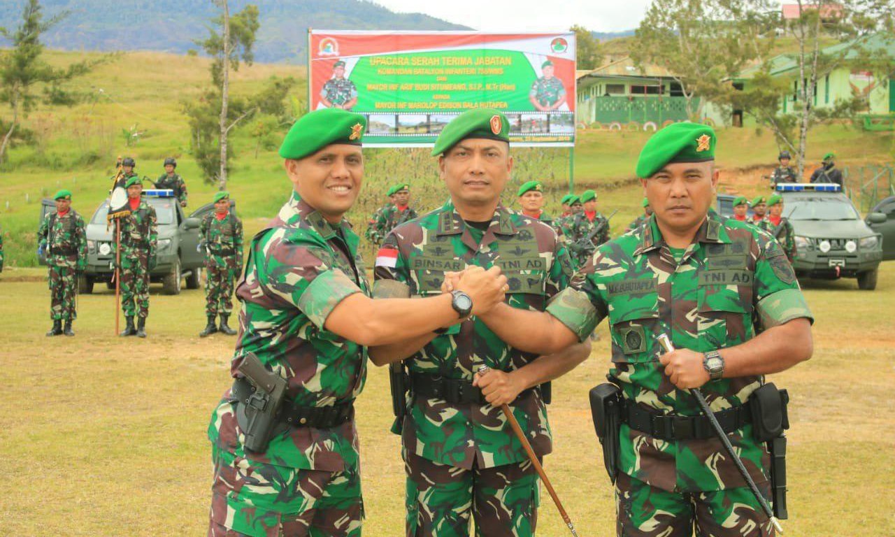 Komandan Korem 172/Praja Wira Yakthi Kolonel Inf Jonathan Binsar Parluhutan Sianipar memimpin pelaksanaan upacara serah terima jabatan Komandan Batalyon Infanteri 756/Wimane Silli bertempat di Lapangan Sapta Marga Mayonif 756/WMS Distrik Hubikosi Kabupaten Jayawijaya, Papua, pada Jumat (20/9/2019).