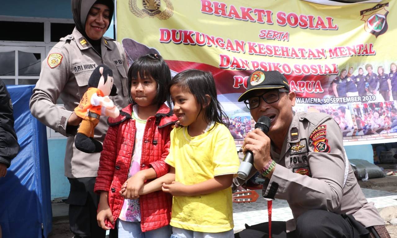 “Hari ke-3 di Kota Wamena, tim trauma haeling Polda Papua kembali memberikan layanan trauma haeling kepada anak-anak yang berada di pengungsian pangkalan TNI AU Wamena,” kata Kamal.