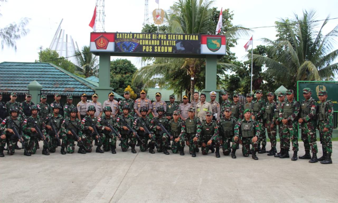 Kapolda Papua, Irjen. Pol. Drs. Paulus Waterpauw Kapolda Papua, Selasa Siang (22/10) mengunjungi Pos Kotis Satgas Pamtas Yonif 713/Satya Tama di Skouw Distrik Muara Tami, Kota Jayapura.
