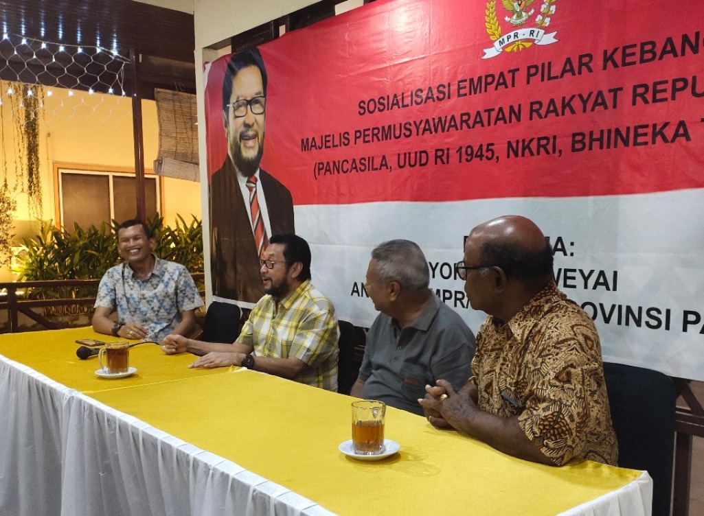 Timika – Senator asal Papua atau anggota Dewan Perwakilan Daerah (DPD) RI Yorrys Raweyai menggelar sosialisasi empat pilar kebangsaan yakni Pancasila, UUD 1945, NKRI dan Bhineka Tunggal Ika di Timika, Kabupaten Mimika, Papua, pada Minggu (8/12).