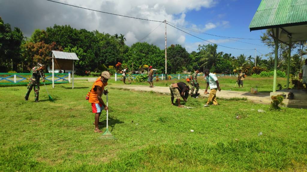 Kegiatan yang dipimpin langsung oleh Serka Mislan, selain untuk meningkatkan hubungan baik serta mendengarkan segala keluh kesah masyarakat, satgas juga melakukan kegiatan pembersihan gereja tempat ibadah masyarakat Srum bersama – sama dengan masyarakat setempat.