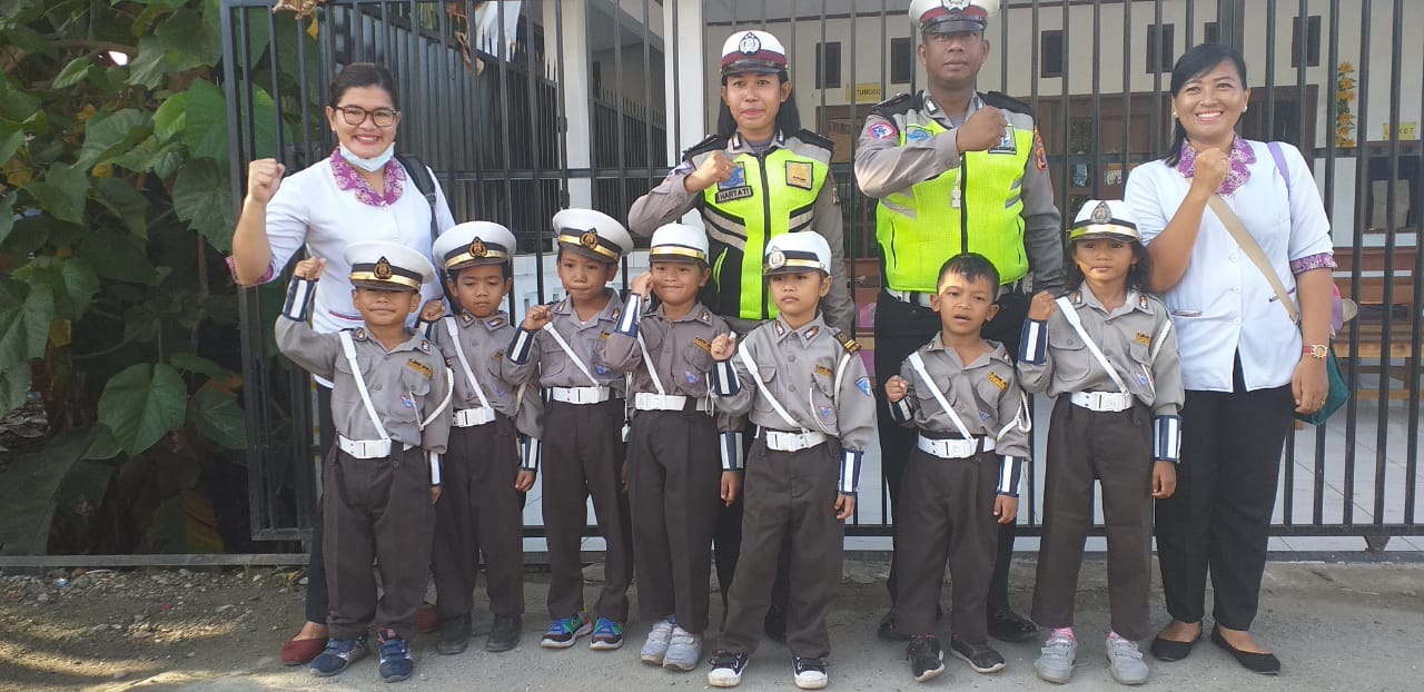 “Kali ini satuan lalu lintas Polres Jayapura, ditemani sekaligus mengajari dan mempraktekkan langsung gerakan – gerakan maupun aba – aba pengaturan Lalu Lintas kepada anak – anak murid yang didampingi juga oleh guru TK Kemala Bhayangkari Sentani,” ucap Kasat Lantas AKP Andika T. Purba, SH., S.IK di Sentani, Kamis (30/1/2020)