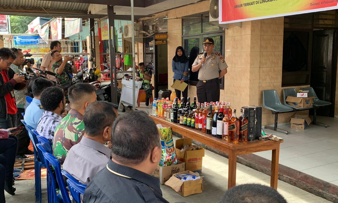 Kapolres Jayapura AKBP Victor Dean Mackbon, SH., S.IK., MH,. M.Si melalui Kapolsek Kawasan Bandara Sentani Iptu Ihaka Max Imoliana mengucapkan terimakasih kepada seluruh instansi dan stake holder yang telah meluangkan waktunya untuk dapat hadir bersama-sama disini, dalam rangka pemusnahan barang bukti minuman keras beralkohol, dan barang-barang bukti lainnya yang mana barang-barang tersebut telah disita atau ditahan di beberapa areal bandara.yaitu di areal Terminal Keberangkatan dan Regulated Agent Cargo berada di Bandara Sentani, yang sebagian besar akan diselundupkan ke wilayah khususnya daerah pegunungan.