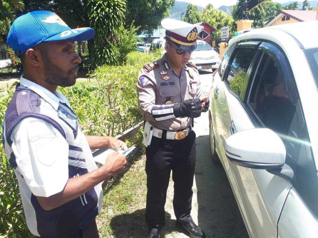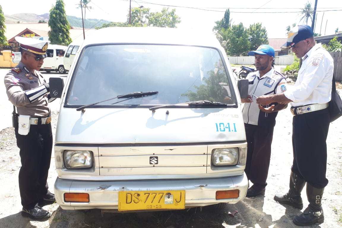 “Pagi ini kami bersama 10 personil Dinas Perhubungan Darat melaksanakan razia dengan sasaran angkutan umum, razia kami laksanakan di jalan Hawai tepatnya di depan Masjid Al Aqsa Sentani, berlangsung selama 1 jam dan berhasil menjaring 26 sopir angkot yang melanggar sehingga langsung kami berikan sangsi berupa tilang,” jelas