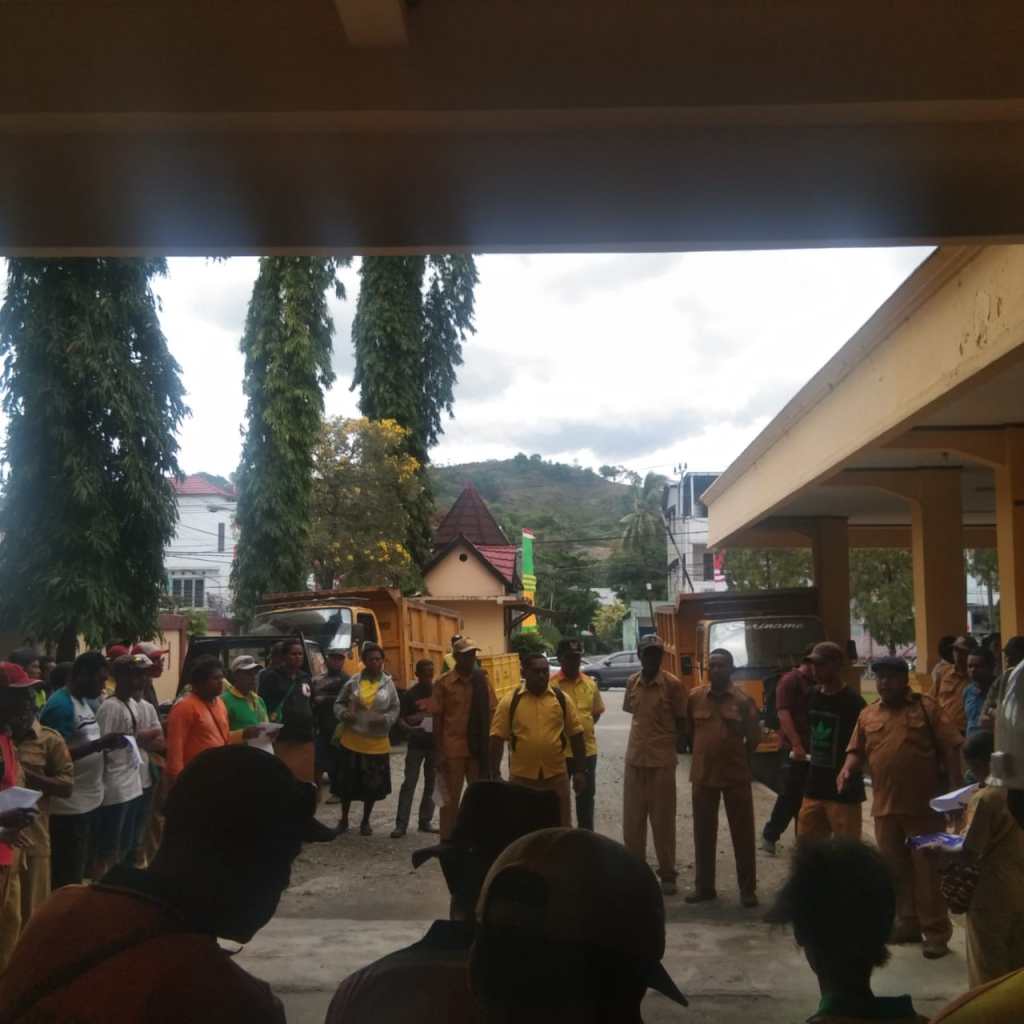 Jayapura (Sentani News) – Buruh bidang Kebersihan dan ASN Likungan Hidup dan Kebersihan (DLHK) Kota Jayapura melakukan orasi di Kantor DPRD Kota Jayapura, menuntut hak mereka karena merasa diperlakukan tidak adil oleh Kepala DLHK Kota Jayapura.