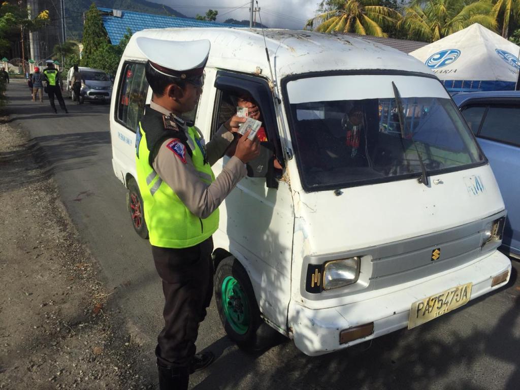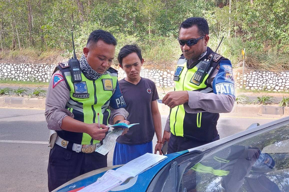 Lanjutnya, razia yang dilaksanakan di depan Masjid Al Aqsa berhasil mendapati 55 pelanggaran diantaranya sepeda motor 48, mobil pribadi 5 dan 2 taksi/angkutan umum, selain itu melalui unit Patwal juga melaksanakan patroli diseputaran jalan Hawai hingga Kampung Harapan dan mendapati 4 pengendara sepeda motor dan 2 pengemudi truck yang kesemuanya kami berikan sanksi berupa tilang ditempat.(tinus)
