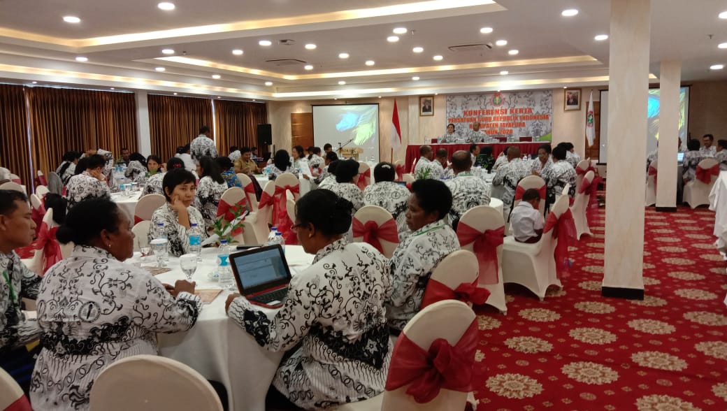 Sentani (Sentani News)- Merumuskan sejumlah program kerja untuk jangka menengah maupun jangka panjang, sebagai bermitra Dinas Pendidikan, maka Persatuan Guru Republik Indonesia (PGRI) Kabupaten Jayapura gelar Konferensi Kerja Tahun 2020, di Hotel HoreX, Kota Sentani, Kabupaten Jayapura, Selasa (25/2/2020) kemarin pagi.