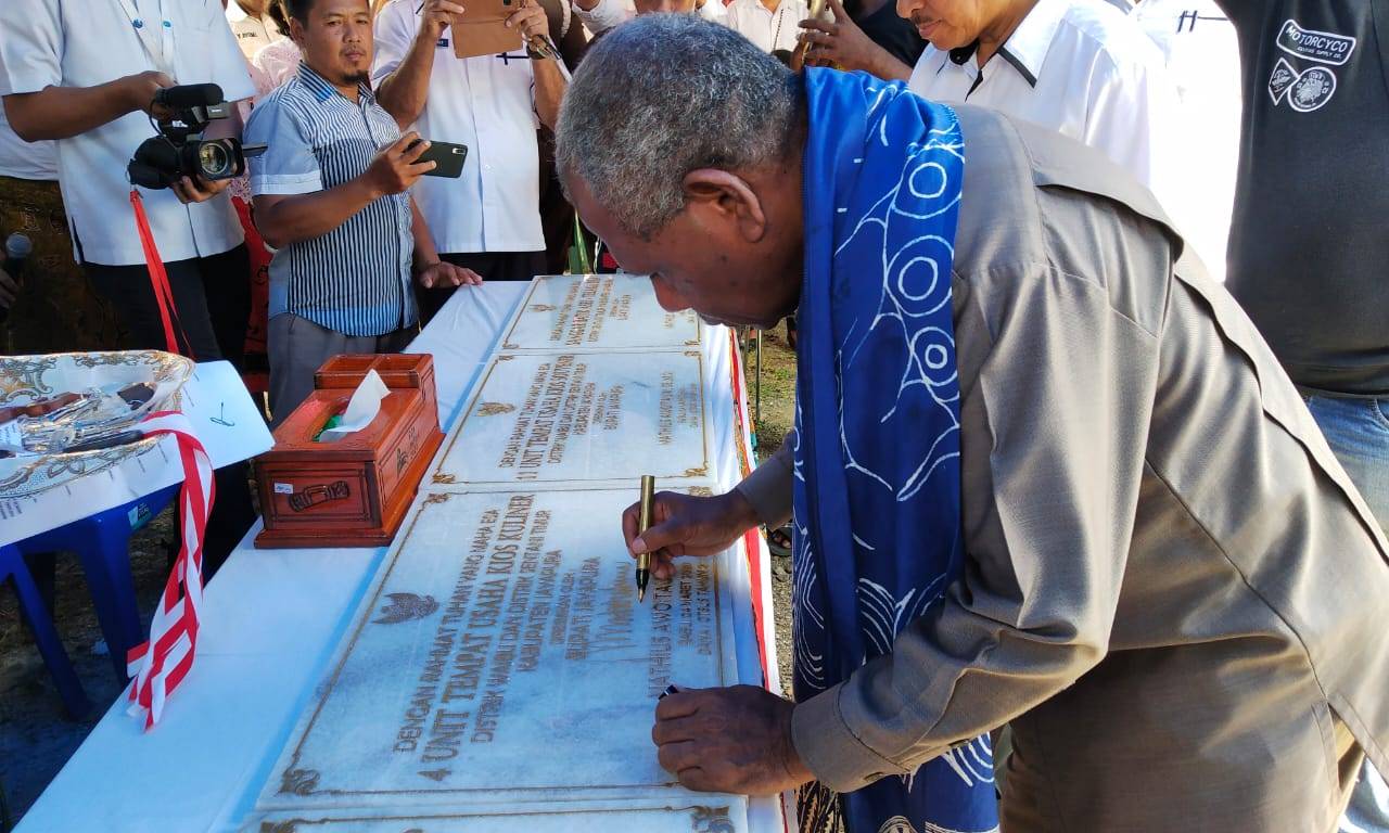 “Bantuan yang diserahkan yakni 1 unit sanggar batik, 1 unit rumah produksi herbal dan 15 lapak kuliner maupun souvenir yang berada mulai dari batas Kota hingga bukti teletubbies Distrik Waibu,” ujarnya.