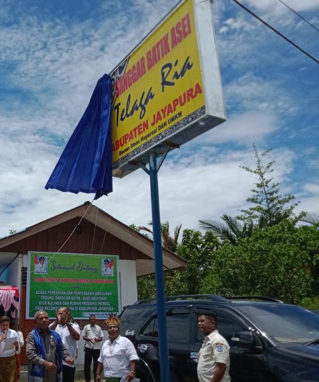 Sentani (Sentani News)- Bupati Jayapura Mathius Awoitauw, SE, M.Si, meresmikan Sanggar Batik Asei Telaga Ria, sekaligus menyerahkan 11 unit kios souvenir, 4 unit kios kuliner dan rumah produksi herbal Asema Group kepada kelompok usaha yang ada di Kabupaten Jayapura.