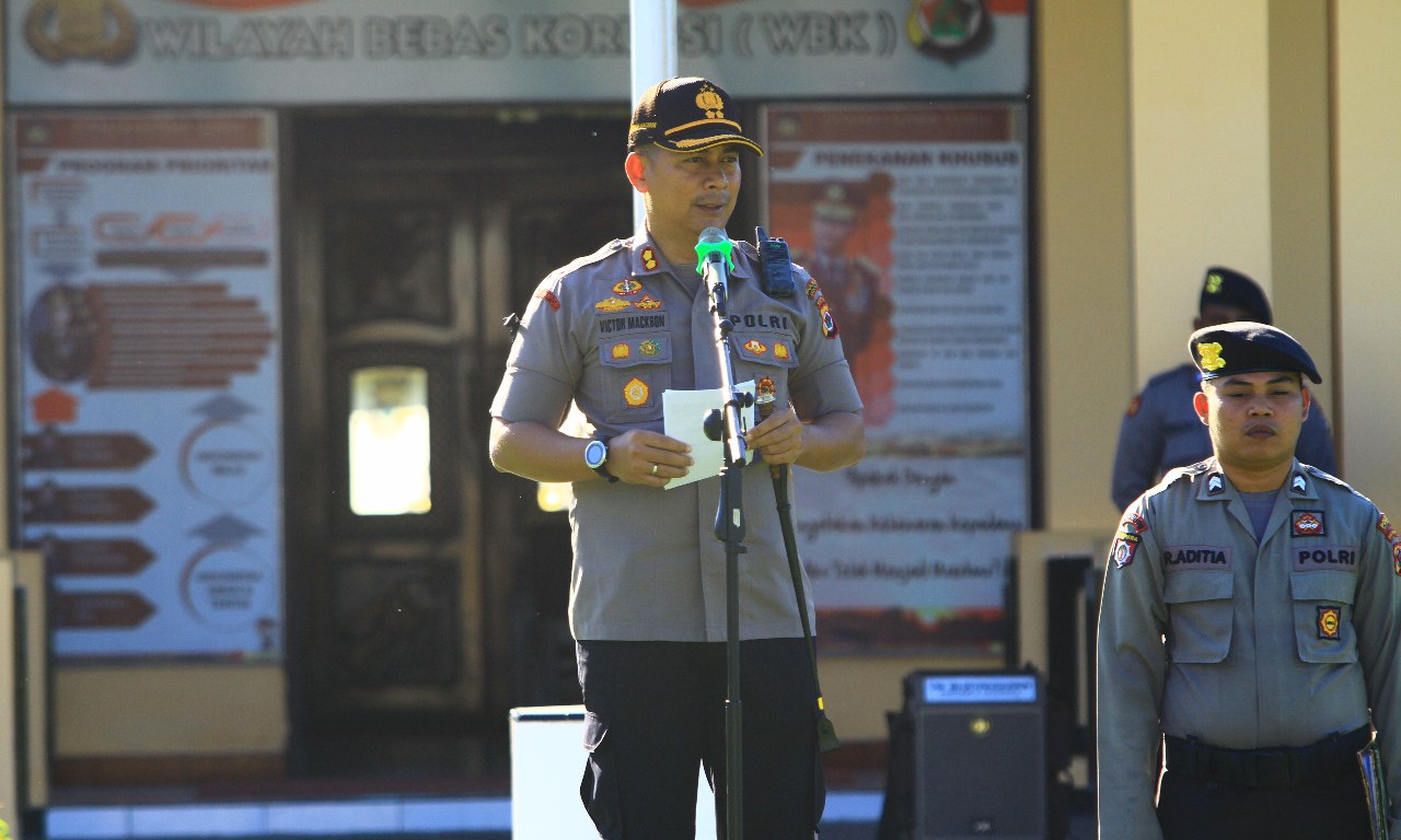 Upacara tersebut dipimpin langsung oleh AKBP Dr. Victor Dean Mackbon, SH., S.IK., MH., M.Si dihadiri para pejabat utama serta anggota Polres Jayapura.