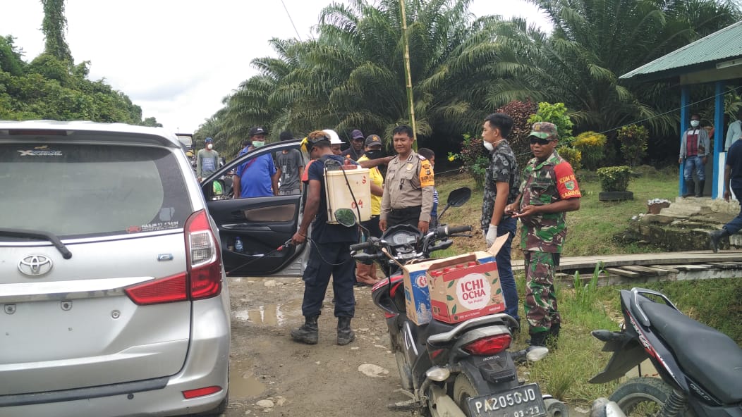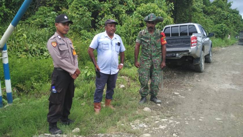 Sentani (Sentani News)- Aparat gabungan Distrik Unurumguay yang terdiri dari Kadistrik Manase, Jek, S.IP, bersama Kapolsek Ipda Jordan R.Z Pellokila, S.Tr.K yang diwakili Bhabinkamtibmasnya Bripka Mujiono dan Bripka Heru Utomo serta anggota Bhabinsa Koramil Serka Toti sampaikan imbauan serta pemeriksaan suhu tubuh bagi karyawan serta warga yang berada di seputaran mata jalan Pos Security kebun kelapa sawit PT. Rimba Matoa Lestari.