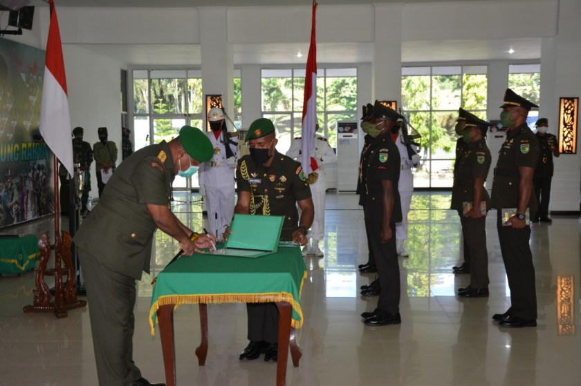 Jayapura (Sentani News)- Bertempat di Aula Tonny A Rompis Makodam XVII/Cenderawasih, Pangdam XVII/Cenderawasih Mayjen TNI Herman Asaribab menggelar acara penutupaan prajurit Pendidikan Pertama Tamtama (Dikmata) TNI AD Gelombang II TA. 2019 yang dilakukan melalui Video Confrence.