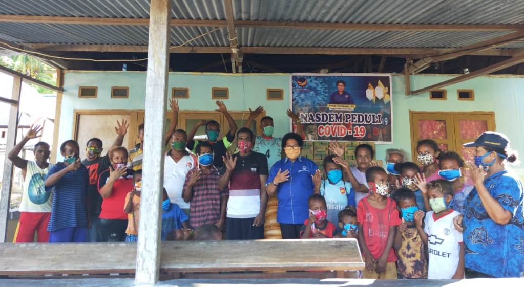 Jayapura – Politisi Partai Nasdem Provinsi Papua Ance Wanggai membagikan sembako dan masker gratis kepada warga di Distrik Warsa, Kabupaten Biak Numfor.