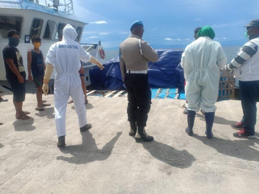 Made menambahkan dalam membantu Tim Gugus Tugas, tetap menggunakan alat pelindung diri (APD) sesuai protokol kesehatan untuk melindungi diri dan mengurangi resiko penularan bakteri atau virus yang dibawa oleh para ABK kapal ini.