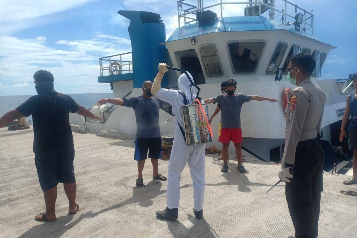 Made menambahkan dalam membantu Tim Gugus Tugas, tetap menggunakan alat pelindung diri (APD) sesuai protokol kesehatan untuk melindungi diri dan mengurangi resiko penularan bakteri atau virus yang dibawa oleh para ABK kapal ini.