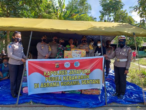 Kapolres Jayapura AKBP Dr. Victor Dean Mackbon SH., S.IK., MH., M.Si didampingi Ketua Bhayangkari Cabang Jayapura Ny. Ayudia Victor Mackbon, Wakapolres Jayapura Kompol Zet Saalino SH., MH beserta PJU dan anggota Polres Jayapura, Senin mengatakan hal itu dilakukan sebagai wujud kepedulian terhadap masyarakat di Asrama Koramil Sentani yang mengalami musibah kebakaran.