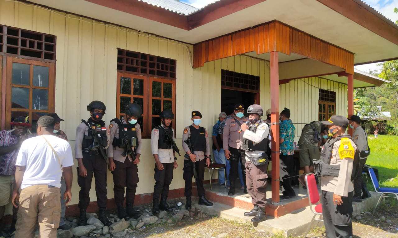 JAYAPURA – Rapat pleno rekapitulasi perhitungan suara Pemilihan Bupati dan Wakil Bupati Kabupaten Yalimo Tahun 2020 untuk wilayah Distrik Elelim dikawal atau dijaga ketat aparat keamanan Polri dan TNI.