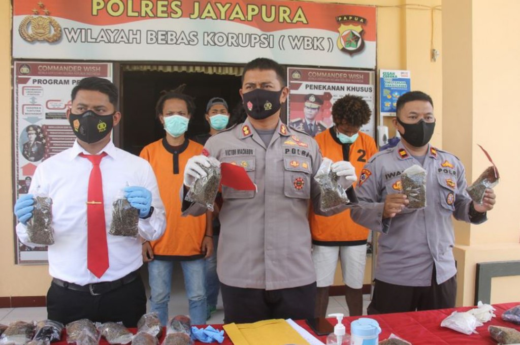 Hal ini terungkap dalam press conference, Kapolres Jayapura AKBP Dr. Victor Dean Mackbon, SH., S.IK., MH., M.Si didampingi Kasat Reserse Narkoba Ipda Noevaldo Sitinjak, S.Tr.K dan Kassubag Humas Iptu Iwan, SE.