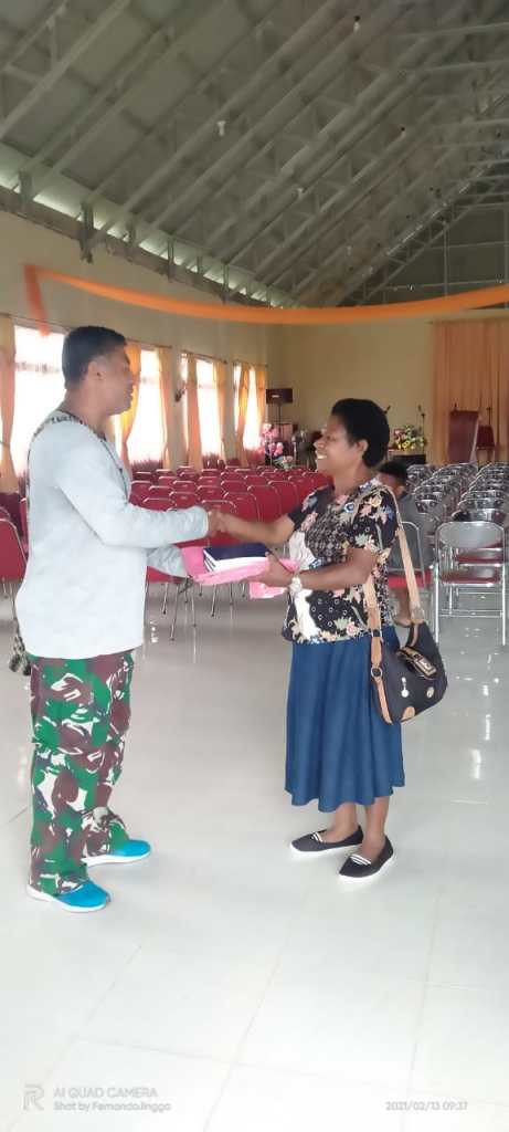 Khusus pada momentum ini, Koramil 1715-07/Keneyam bekerjasama dengan Satgas 700/R memberikan bantuan berupa Alkitab Perjanjian Baru sebanyak 60 buku dan 6 baju kaos yang diterima oleh ibu gembala jemaat Yerusalem ibu Pdt Bertha Kogoya.(Man)
