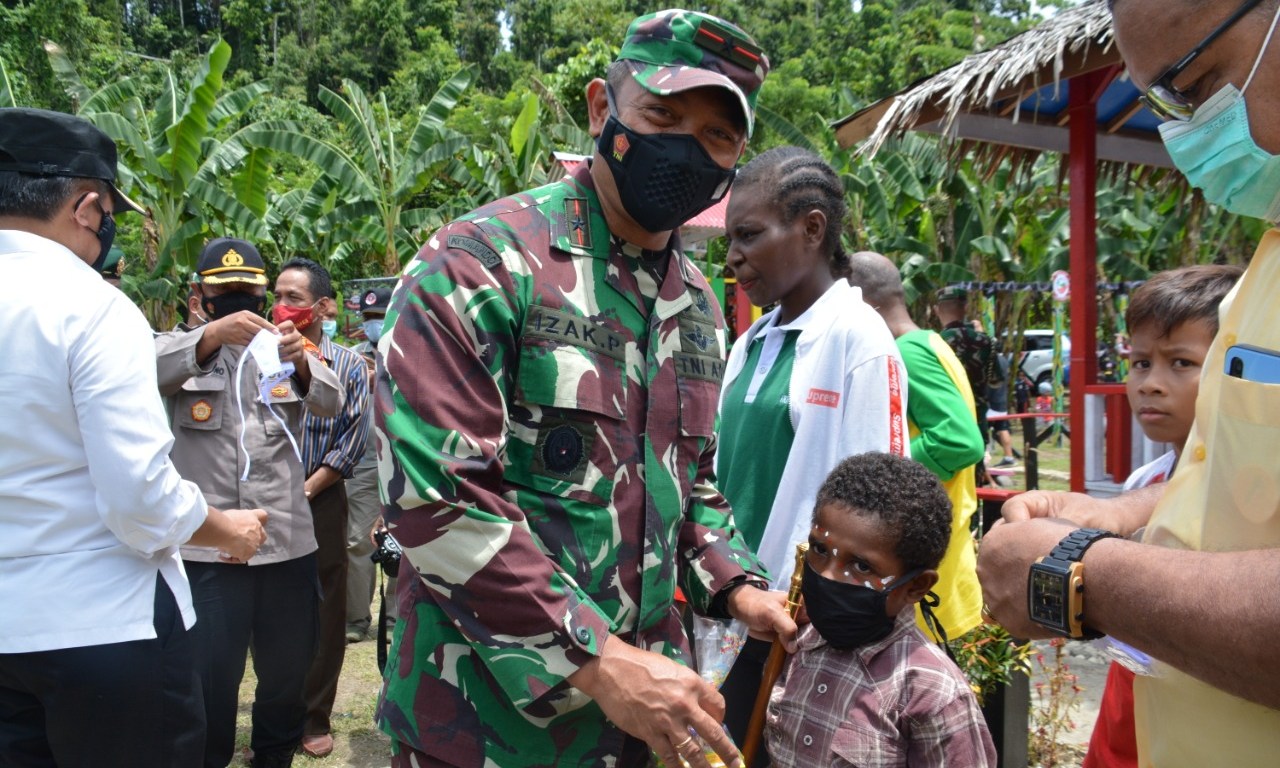 Muara Tami,- Minggu, (21/02/2021). Bertempat di Lapangan depan Pos Mosso Satgas Pamtas Yonif Mekanis Raider 413/Bremoro Kostrad, Komandan Korem 172/PWY Brigjen TNI Izak Pangemanan, M.Han. resmikan Pondok Baca dan Taman Bermain di Kampung Mosso Distrik Muara Tami.