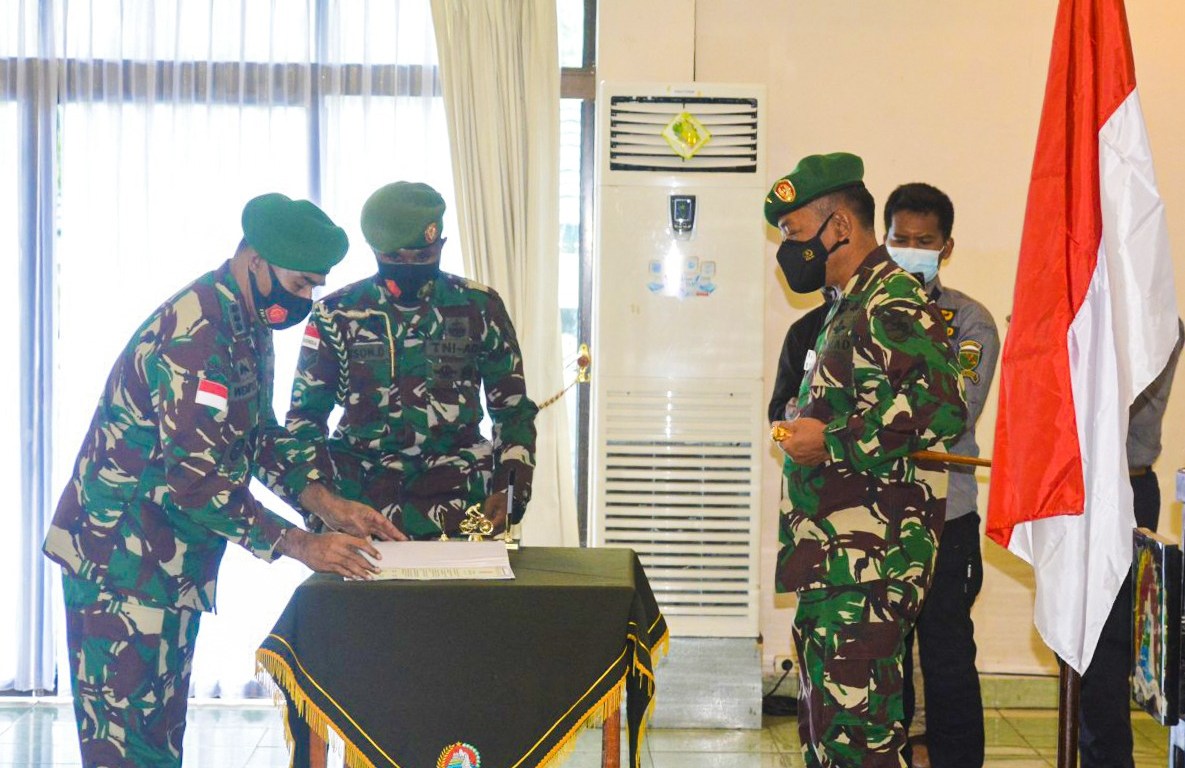 Abepura – Komandan Korem (Danrem) 172/PWY Brigjen TNI Izak Pangemanan menyerah terimakan tugas dan tanggung jawab jabatan Kepala Staf Korem (Kasrem) kepada Kolonel Inf Wempi Ramandey bertempat di Aula Makorem 172/PWY, Selasa (23/2).