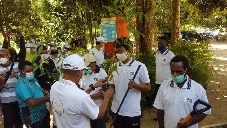 JAYAPURA – Guna memperingati Hari Air Sedunia pada 22 Maret 2021, PDAM Jayapura menggelar aksi penanaman 600 pohon dan pembersihan sumber air di Kamp Wolker Waena, Perumnas 3, Kelurahan Yabansai, Distrik Heram, Kota Jayapura, Papua, Sabtu (20/03)