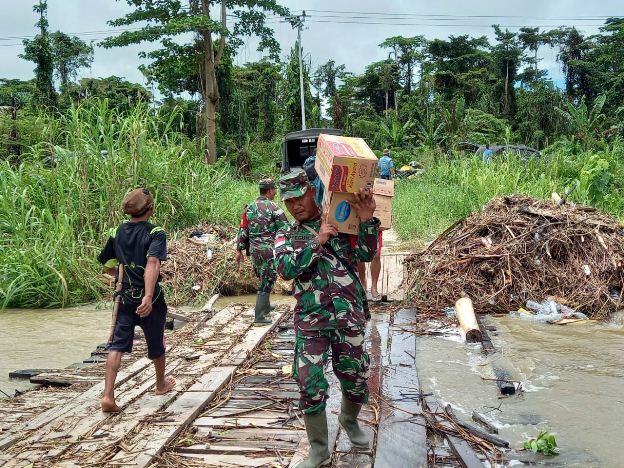 Menyikapi hal tersebut Dandim 1701/Jayapura melalui Wadanramil Arso Lettu Inf Nasrudin, pada Senin (05/04) bergerak cepat menyambangi dan memberikan bantuan sembako berupa beras, mie instan, air mineral, dan beberapa kebutuhan pokok lainnya kepada warga terdampak banjir di Dusun Tuwi.