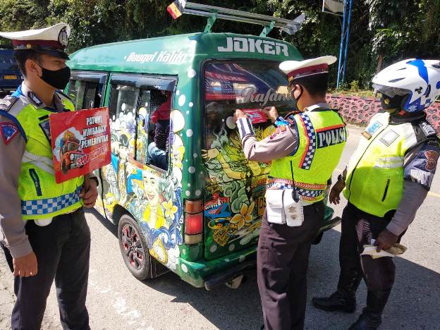 “Selain membagikan stiker, kami juga menghimbau kepada warga atau pengemudi yang ditemukan masih belum menggunakan masker agar dapat disiplin dalam menerapkan protokol kesehatan dimasa pandemi COVID-19 saat ini,” katanya.