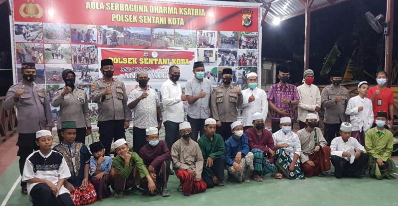 SENTANI- Polsek Sentani Kota menggelar buka puasa bersama (bukber) bersama muspida tingkat distrik dan kabupaten, anak yatim dan insan pers di Aula Serba Guna Dharma Ksatria, Mapolsek, Distrik Sentani, Kabupaten Jayapura, Papua, Sabtu, (24/04).