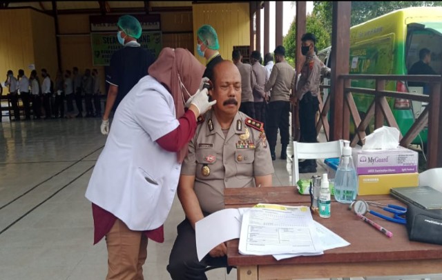Personil yang mengikuti pemeriksaan kesehatan tidak hanya dari polres saja, namun dari seluruh polsek jajaran juga hadir dalam kegiatan dimaksud.