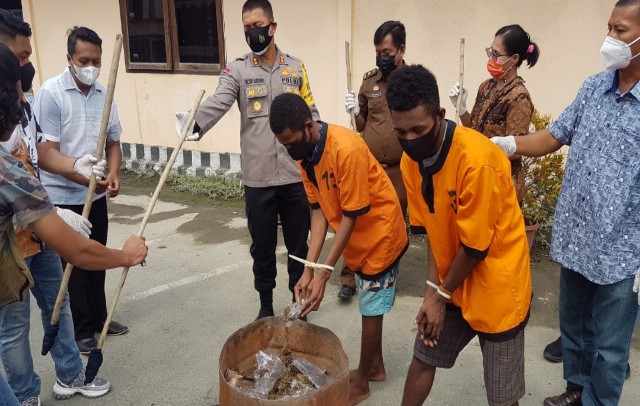 Demikian hal ini diungkapkan oleh Kapolres Jayapura AKBP Dr. Victor Dean Mackbon, SH., S.IK., MH., M.Si saat Satuan Narkoba Polres Jayapura melaksanakan press release pemusnahan barang bukti narkotika jenis ganja dari dua orang pelaku AK (18) dan YK (18), di lapangan Mapolres Jayapura, Doyo Baru, Kabupaten Jayapura, Papua, Rabu (09/06).