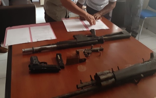 Kasubdit IV Kamneg Direktorat Intelkam Polda Papua Kompol Tofan Irdiyanto mengatakan empat senpi yang diserahkan itu yakni satu pucuk senpi rakitan laras panjang model doble silinder, satu pucuk senpi model AK 47 rakitan, satu pucuk pistol laras pendek modifikasi bersama satu butir peluru 9 mm aktif dan satu pucuk pistol airgun bersama 10 butir amunisi aktif kaliber 5,56 mm.