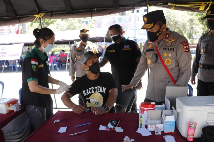 Lanjut Wakapolda, setiap orang harus melakukan vaksin karena itu adalah suatu bentuk perkuatan imunitas tubuh guna melawan COVID-19.