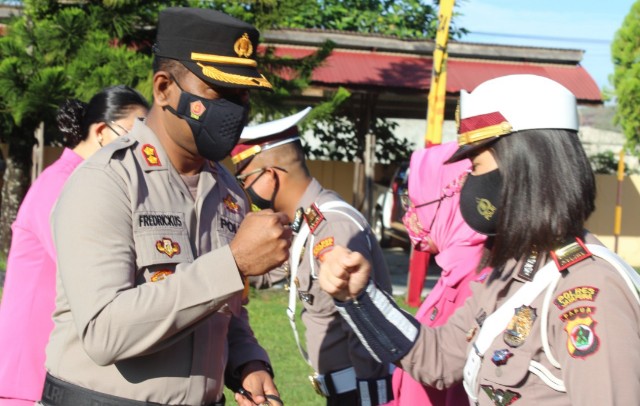 Kapolres Jayapura AKBP Fredrickus W.A Maclarimboen, S.IK, MH mengucapkan selamat kepada saluruh personil yang telah dinaikan pangkat setingkat lebih tinggi.
