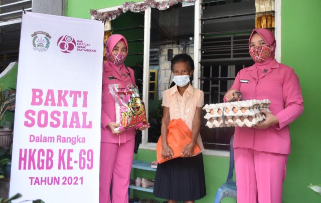 Jayapura – Guna menyambut Hari Kesatuan Gerak Bhayangkari (HKGB) ke-69, Bhayangkari Cabang Jayapura Kota menggelar Bakti Sosial (baksos) kepada warakawuri bertempat di dua lokasi di Kota Jayapura, Papua, Kamis (08/07).