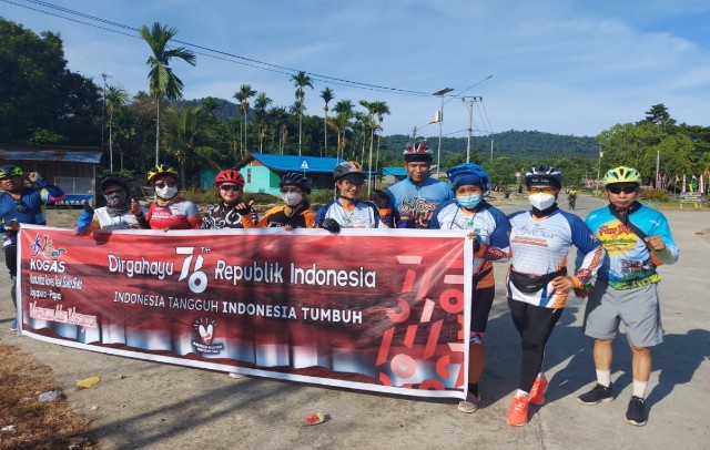 Jayapura – Berbagai cara unik dilakukan oleh masyarakat Indonesia menjelang peringatan HUT RI yang ke-75 tahun ini, termasuk salah satunya komunitas sepeda KO’GAS Jayapura ini.