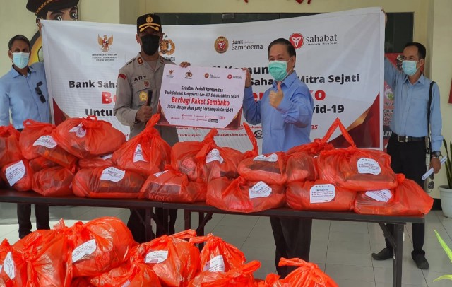 Aksi kepedulian tersebut berupa pembagian masing-masing 300 paket sembako ke 17 cabang Bank Sampoerna dan 17 cabang KSP Sahabat Mitra Sejati di seluruh Indonesia.