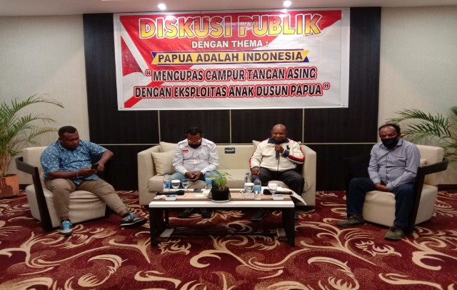 Jayapura – Kesejahteraan menjadi persoalan utama di Papua, sehingga hal itu yang dibahas dalam diskusi publik yang mengusung tema Papua adalah Indonesia dengan sub tema “Mengupas campur tangan asing dengan eksploitasi anak dusun Papua”